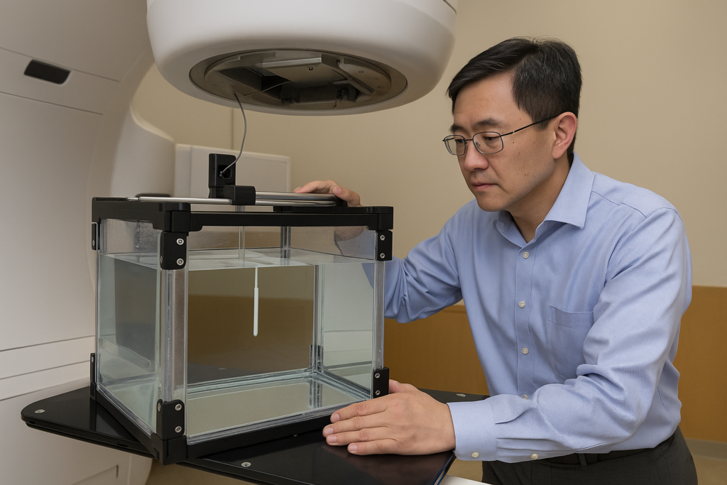 In radiation therapy, accuracy is critical. The water tank “phantom” simulates human tissue, enabling physicists to measure and verify the radiation dose and beam shape from LINAC machines. Every LINAC, even of the same model, works slightly differently and needs regular calibration to ensure treatments remain safe and effective.